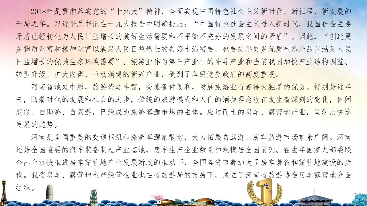 (一)展会名称、时间、地点: 2018年首届中国(郑州)国际房车旅游产业链大会 2018年3月31日--4月2 日