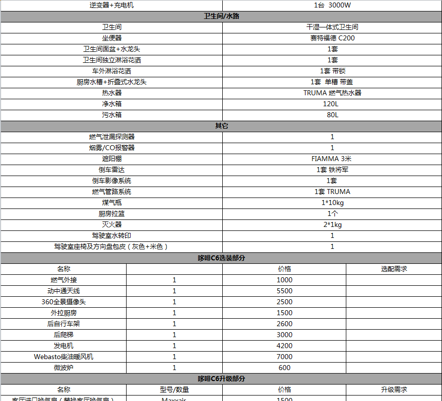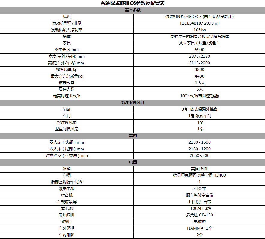 戴德隆翠哆啡C6依维柯C型房车  49.8万元 配置表1
