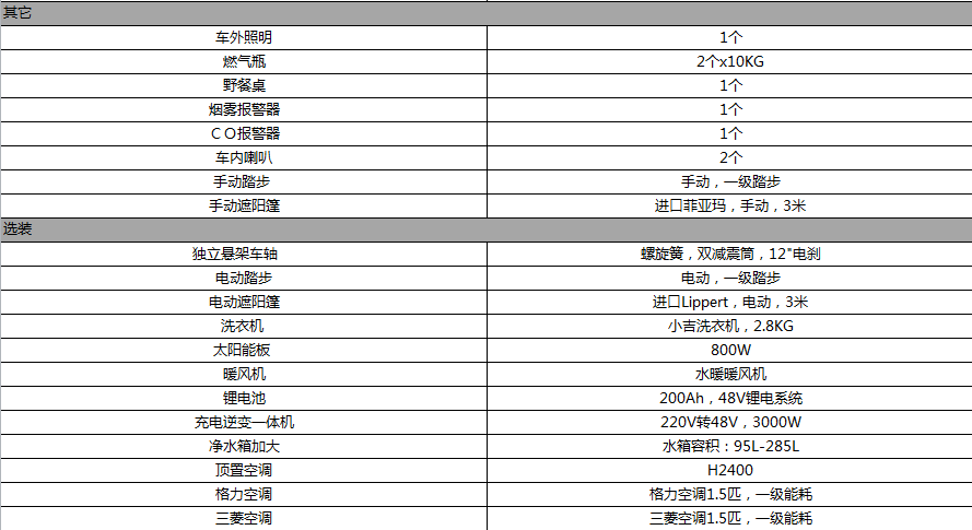 戴德隆翠C15拖挂式上路房车  16.8万元 配置表2