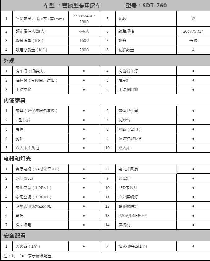 棋牌型营地型(8M)房车配置表: