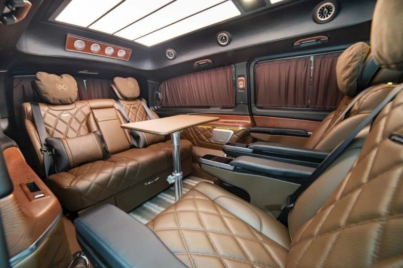 奔驰VST880商务车车身尺寸为5400*1928*2080mm,前脸十分独特,采用包围设计,奔驰的立标LOGO也很醒目,下包围做了扩大式镀铬轮廓,两侧的雾灯也非常别致。后舱四周采用隐私玻璃设计,且都增加了镀铬边框,给人一种稳重感,但并不压抑,搭配整车的流线型线条,彰显了奔驰商务车的独特魅力。 侧面采用复古悬浮的锻造轮毂,同时在B柱和侧裙下摆处都添加了镀铬饰条,整车也是加高顶的设计,比普通车型增加15公分,可以保证车内拥有更加宽敞的活动空间,虽然采用加高设计,但下地库还是没有问题的。 车内驾驶室采用深色设计,虽然没有S级那么豪华,但整体进行了改造升级;整个操控台选用真皮包覆,主副驾驶座椅可电动操控,标配通风、加热、按摩等功能,座椅之间设有储物箱和凹槽,满足日常储物使用;传动系统匹配9AT变速箱+四轮空气悬挂,行车更加稳定,减少顿挫感。在安全系统方面,整车配有主副驾驶安全气囊、倒车雷达+倒车影像、车机互联+GPS导航等辅助功能,为您提供极具现代感、科技感的驾驶环境。 这台奔驰商务车的后舱比埃尔法要高级一些,座椅均采用棕色真皮包覆,第二排采用加大码的航空座椅,根据人体工程学原理设计,更加贴合乘客的腰线,为不同乘客都能带来更好的舒适感,且座椅上配有无线充电、可调节脚踏板等,满足您的使用需求;前排座椅后方还设有车载液晶屏幕和小桌板,用于会议办公、休闲娱乐皆可。 舒适的头枕,加长版的腿托,第三排座椅的空间甚至超越了第二排座椅,且靠背可一键放平,为您提供如家一般的氛围感;两排座椅之间设有多功能桌,竖立一个小桌板,相当于是一个移动会议厅,不管好友聚会,亲朋聊天,还是处理公事,都能够为您提供更多选择。 值得一提的是,车内顶灯设计也十分具有个性,可以调节三档亮度,比起其他商务车的昏暗环境,整体氛围感更好;内饰的高级感不仅体现在顶灯上,还有车内的整体装饰,车窗配有隐私帘,可以更好保护车内乘客的个人隐私空间;车侧配有高级装饰品,造型美观,实用性强。 以上就是这辆2022款奔驰VST880商务车的简单介绍啦,这款车可以说是拥有不凡的气质,开着它出行一定会让您气场倍增,生意场上合作融洽,心动就尽快行动吧。